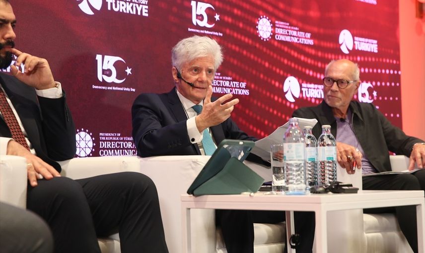 Avusturya'nın başkenti Viyana'da, "15 Temmuz Demokrasi ve Milli Birlik Günü" etkinlikleri kapsamında "Zaferin Adı Türkiye" paneli yapıldı. Cumhurbaşkanlığı İletişim Başkanlığınca düzenlenen etkinliğe, Türkiye'nin Birleşmiş Milletler (BM) Viyana Ofisi nezdindeki Daimi Temsilcisi Prof. Dr. Mustafa Kibaroğlu (solda), Ahi Evran Üniversitesi Uluslararası İlişkiler Bölümünden Doç. Dr. Burak Güneş (sol 2), Avusturya'nın eski Ankara Büyükelçisi Klaus Wölfer (ortada), Avrupa Eğitim ve İletişim Derneği (ESEC) Başkanı Prof. Dr. Thomas Bauer (sağ 2) ve Medya ve İletişim Uzmanı Dr. Harvey Dzodin (sağda) katıldı.