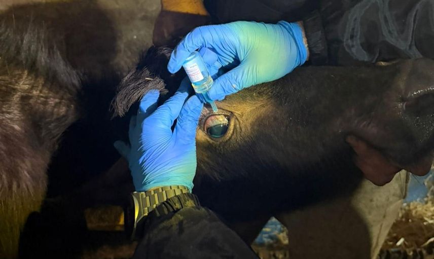 Teknik ekipler, hayvan hastalıkları ile mücadele programı çerçevesinde, 3 ayını doldurmuş büyükbaş hayvanlara brucella aşısı uyguluyor.