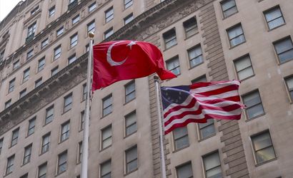 New York'un finans merkezi Wall Street'te, Cumhuriyet'in 102. kuruluş yıl dönümü onuruna Bowling Green Park'ta düzenlenen törende, geleneksel Türk ve ABD bayrakları göndere çekildi.