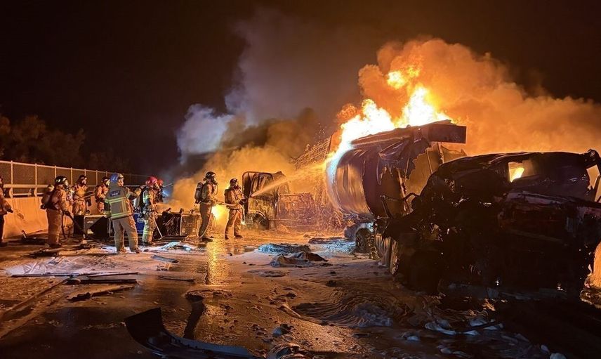 Çarpışma sırasında aralarında bir yolcu otobüsü ile binek otomobillerin de bulunduğu çok sayıda araç birbirine girdi. Kazada bazı araçlarda yangın çıktı; yangın, itfaiye ekiplerinin yoğun çalışmasıyla yaklaşık 2,5 saat sonra kontrol altına alındı.