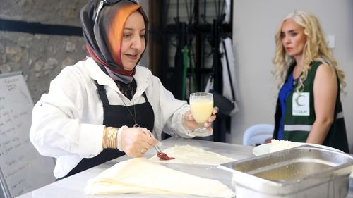 Yeşilay, Kastamonu'daki yaz Kur'an kursunda çocuklara ev yapımı yiyecekler ikram ederken sağlıklı beslenme farkındalığı yaratıyor.