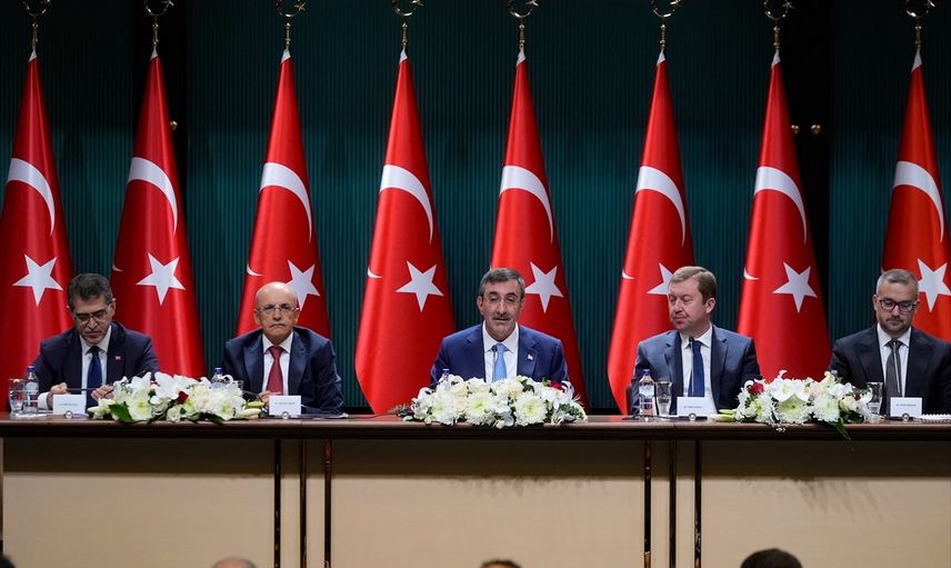 Cumhurbaşkanı Yardımcısı Cevdet Yılmaz, Cumhurbaşkanlığı Külliyesi'nde, Resmi Gazete'de yayımlanarak yürürlüğü giren 2026-2028 dönemini içeren Orta Vadeli Program'ı (OVP) açıkladı.