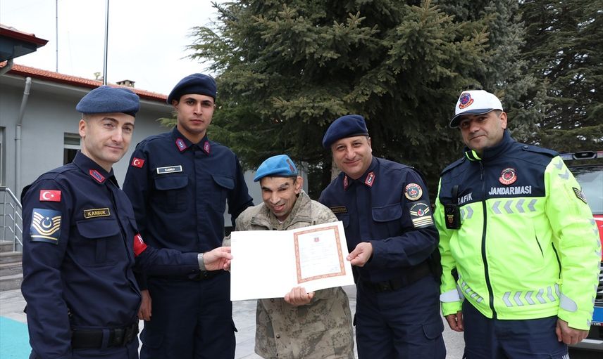 Yozgat'ta, Aile ve Sosyal Hizmetler İl Müdürlüğü ile İl Jandarma Komutanlığı ekipleri, 45 yaşındaki zihinsel ve bedensel engelli Coşkun Ak'ın askerlik hayalini gerçeğe dönüştürdü.