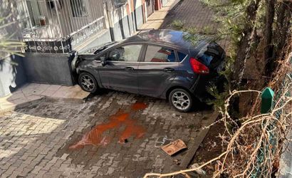 Yozgat'ta kontrolden çıkan araç apartman bahçesine düştü