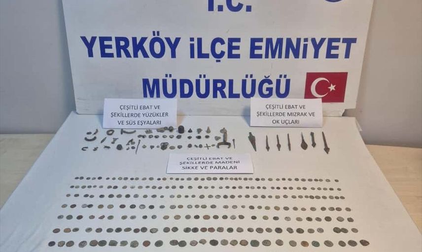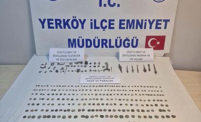 Yozgat'ın Yerköy ilçesinde çeşitli dönemlere ait tarihi eser niteliğinde olduğu değerlendirilen 328 sikke ile 56 obje ele geçirildi, 1 şüpheli gözaltına alındı.