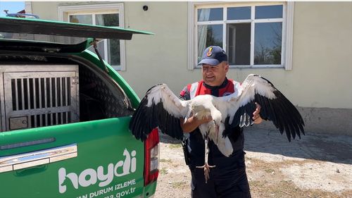 Yozgat'ın Yerköy ilçesinde Tufaner ailesi, yaralı leylek 'Su'yu jandarma ekiplerine teslim etti.