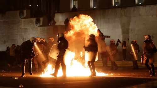 Atina'da, 57 kişinin yaşamını yitirdiği tren kazasının sorumlularının bulunması için gösteri yapıldı.