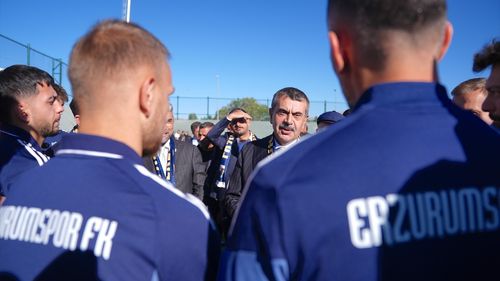 Milli Eğitim Bakanı Yusuf Tekin, Erzurumspor FK tesislerini ziyaret etti; Başkan Ahmet Dal ile görüştü, teknik heyet ve futbolcularla buluşup hatıra fotoğrafı çektirdi.