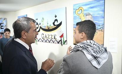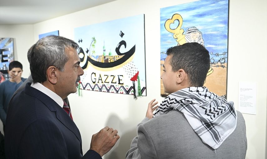 Milli Eğitim Bakanı Yusuf Tekin, Türkiye'ye gelen Filistinli öğrencilerin yaptığı eserlerden oluşan "Umut Acıya Direnirken" adlı resim sergisini ziyaret etti.