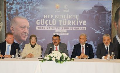 Milli Eğitim Bakanı Yusuf Tekin (ortada), Kütahya'da bir restoranda düzenlenen "Türkiye Yüzyılı Buluşmaları" programına katılarak konuşma yaptı.