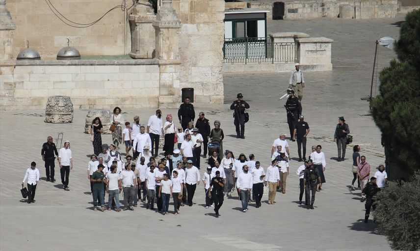 Filistin resmi ajansı WAFA kaynaklı habere göre, bu grupların Harem-i Şerif’te İsrail bayrağı açıp, çeşitli dini ritüeller gerçekleştirdiği vurgulandı. Bazı Yahudilerin Mescid-i Aksa’ya Tevrat ruloları ile girmeye çalıştığı ifade edilirken, Burak Duvarı (Ağlama) bölgesinde de binlerce fanatik Yahudi’nin ayinler düzenlediği kaydedildi.