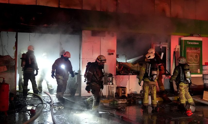 Yangın, yaklaşık 300 metrekare kapalı alana sahip olan iki katlı marketin giriş katında başladı ve kısa sürede marketin tamamını sardı. İhbar üzerine olay yerine itfaiye, polis ve sağlık ekipleri sevk edildi.