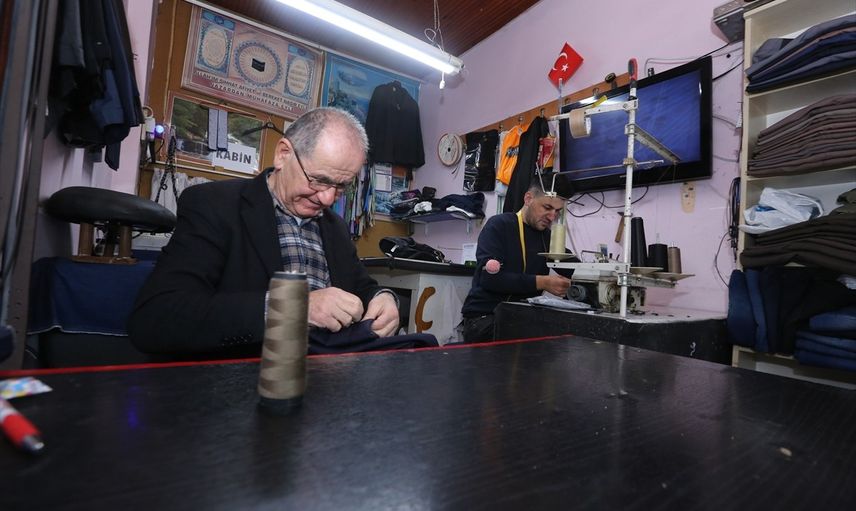 Zonguldak'ın Çaycuma ilçesinde çocuk yaşlarda öğrendiği terziliği 40 yıldır aynı heyecanla sürdüren Naci Yurt, 15 metrekare dükkanında mesleği öğrettiği oğlu Ferdi Yurt ile müşterilerine hizmet vermeye devam ediyor.
