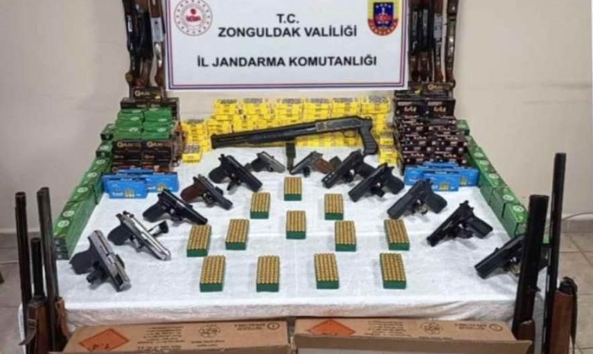 ZONGULDAK İL JANDARMA KOMUTANLIĞI EKİPLERİNİN ÇAYCUMA'DA DÜZENLEDİĞİ OPERASYONDA, 9 AYRI ADRESE EŞ ZAMANLI BASKIN YAPILDI. ARAMALARDA SİLAH İMALATHANESİ OLARAK KULLANILAN BİR ATÖLYE, 18 TABANCA, 12 AV TÜFEĞİ VE YAKLAŞIK 32 BİN ADET MERMİ ELE GEÇİRİLDİ. OLAYLA İLGİLİ 7 ŞÜPHELİDEN 2'Sİ TUTUKLANDI.