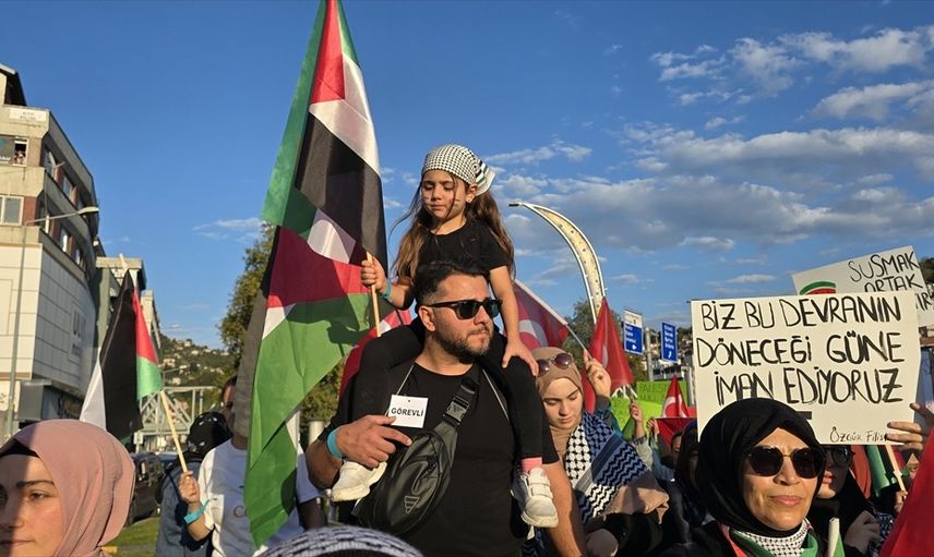 Zonguldak'ta, Gazze'ye insani yardım ulaştırmak için yola çıkan ve İsrail'in saldırısına uğrayan Küresel Sumud Filosu'na destek yürüyüşü düzenlendi.