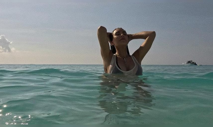 Tatil karelerini sosyal medya hesabından paylaşan Kardashian, bu paylaşımlarıyla da gündem olmayı başardı.