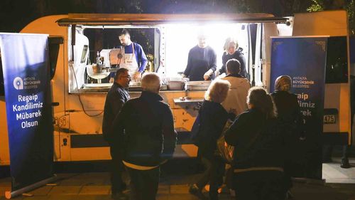 Antalya Büyükşehir Belediyesi, Regaip Kandili dolayısıyla 19 ilçede mobil stantlarla 5 bin kişiye sıcak lokma, 10 bin kişiye kandil simidi ikram etti.