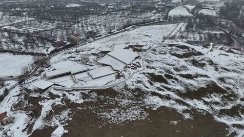 UNESCO'daki Malatya Arslantepe Höyüğü, karla kaplı görüntüleriyle binlerce yıllık tarihini ve katmanlı dokusunu havadan ortaya koydu.