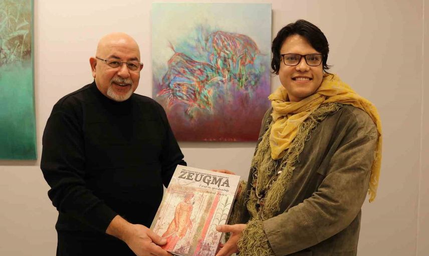 Konuşmaların ardından SANKO Sanat Galerisi Yürütme Kurulu Üyesi Murat Köylüoğlu, SANKO Holding adına sanatçıya Zeugma Fırat’ın Gerdanlığı isimli yayını takdim etti.