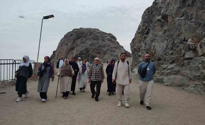 Denizli İl Müftülüğü koordinesinde kutsal topraklarda bulunan umre grubu, program kapsamında Mekke’de yer alan Hira Nur Dağı'na ziyaret gerçekleştirdi. Sabahın erken saatlerinde otelden otobüslerle dağın yamacına kadar ulaşan Denizlili umreciler, buradan itibaren zorlu parkuru yürüyerek tırmandı.