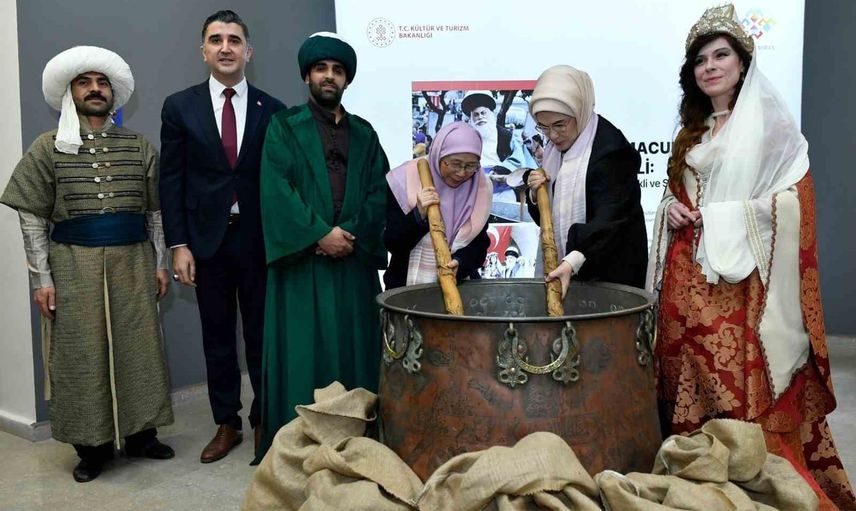Manisa İl Kültür ve Turizm Müdürlüğü ekibi tarafından gerçekleştirilen temsili mesir macunu karımı ve Mesir Festivali canlandırmasının ardından Emine Erdoğan ile Dr. Wan Azizah İsmail de temsili olarak mesir macunu karımı yaptı.