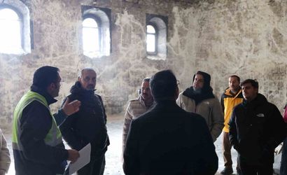 Erzurum Büyükşehir Belediyesi Genel Sekreter Yardımcısı Ünal İnci ile Erzurum İnşaat Mühendisleri Odası üyeleri, Taş Ambarlar Kapalı Çarşı ve Tarih Dioramaları Müzesi Projesi kapsamındaki restorasyon çalışmalarında teknik incelemelerde bulundu.