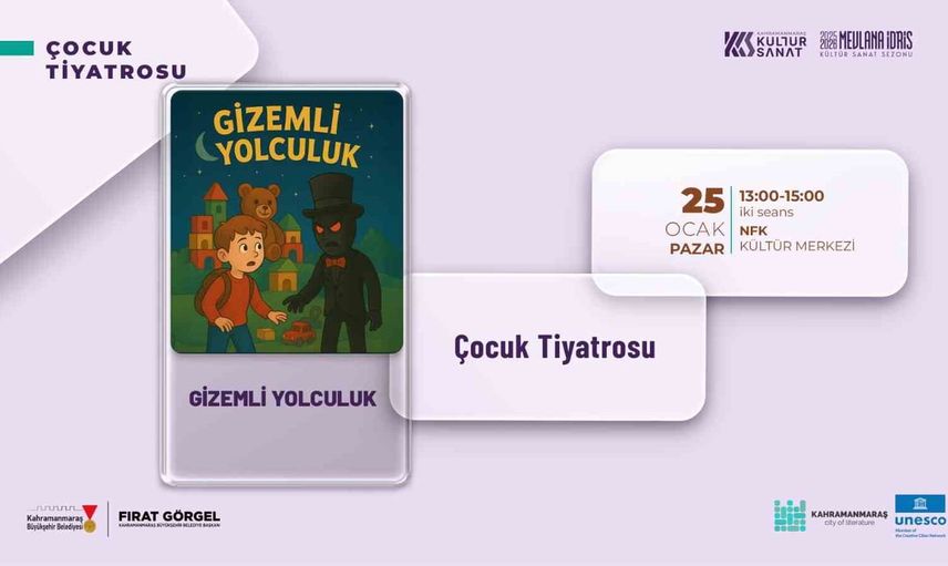 KAHRAMANMARAŞ BÜYÜKŞEHİR BELEDİYESİ, 25 OCAK PAZAR GÜNÜ NFK KÜLTÜR MERKEZİ’NDE “GİZEMLİ YOLCULUK” ADLI TİYATRO OYUNUNU ÇOCUKLARLA, “DELİRİYORUM HABERİN OLSUN” ADLI KOMEDİ GÖSTERİSİNİ İSE YETİŞKİN TİYATROSEVERLERLE BULUŞTURACAK.