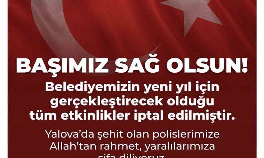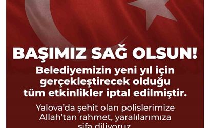"Belediyemizin yeni yıl için gerçekleştirecek olduğu tüm etkinlikler iptal edilmiştir. Yalova’da şehit olan polislerimize Allah’tan rahmet, yaralılarımıza şifa diliyoruz. Başımız sağ olsun"