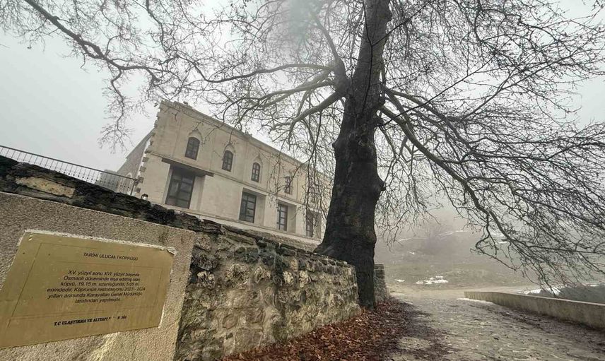 Asırlardır varlığını koruyan tarihî yapı, sabah saatlerinde yoğun sisle kaplanarak dikkat çekti.