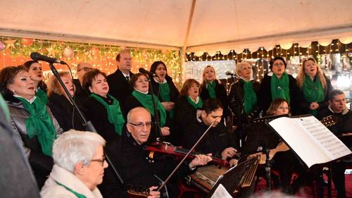 Osmangazi Meydanı'ndaki Yeni Yıl Festivali'nde Uludağ Sanat Derneği Müzeyyen Senar Korosu, şef Hilmi Bozdemir yönetiminde Türk sanat müziği eserleriyle Bursalıları mest etti.