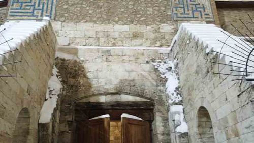 Sivas'ta yoğun kar, Tarihi Kent Meydanı'nı beyaza bürüdü; Şifahiye, Çifte Minareli ve Buriciye Medreseleri ile tarihî yapılar kartpostallık görüntüler oluşturdu.