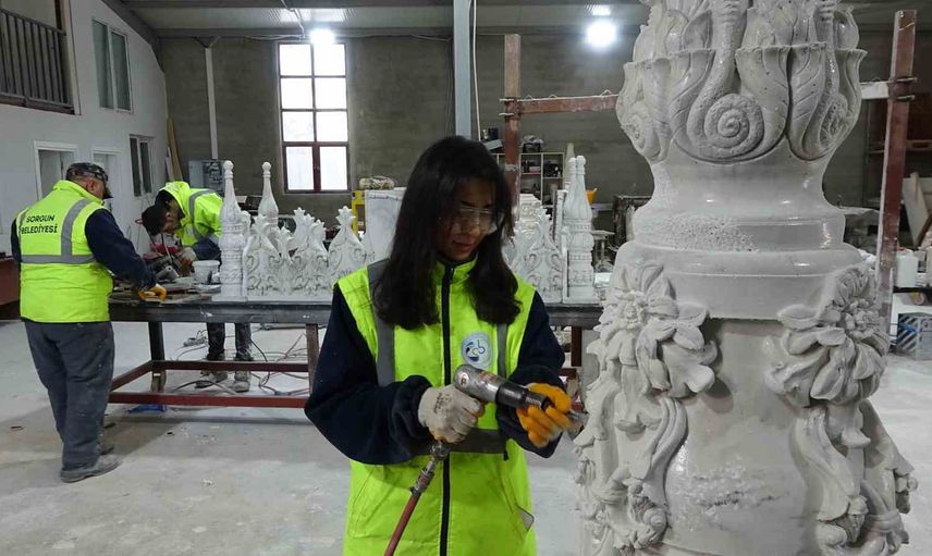 SORGUN BELEDİYESİ DEKORATİF ÜRÜNLER ATÖLYESİNDE ŞEHRİN ESTETİK YAPISI VE MİMARİSİNE ÖNEMLİ KATKILAR SAĞLAYAN 4 BİN YIL ÖMÜRLÜ KUVARS ESERLER ÜRETİLİYOR.