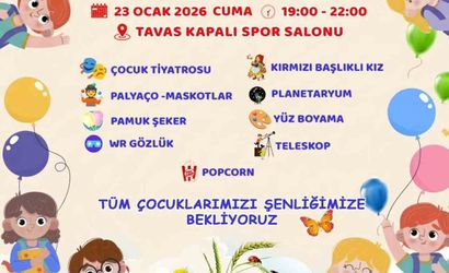 Tavas Belediye Başkanı Kadir Tatık şenliğe tüm çocukları ve ailelerini davet ederek şu ifadeleri kullandı: "Minik kalpler için dopdolu bir eğlence programıyla buluşuyoruz. Çocuk tiyatrosu, palyaço ve maskotlar, planeteryum, yüz boyama, pamuk şeker, popcorn ve daha birçok sürpriz etkinlikle çocuklarımız unutulmaz bir akşam yaşayacak. Tüm çocuklarımızı ve ailelerimizi yarıyıl tatilinin keyfini birlikte çıkarmaya davet ediyoruz" dedi.
