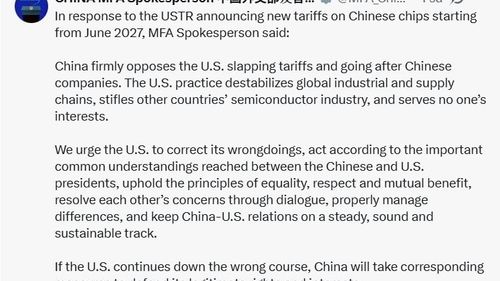 USTR, Çin'den ithal yarı iletkenlere 23 Haziran 2027'den itibaren gümrük vergisi uygulanacağını açıkladı; Pekin kararı şiddetle kınadı ve geri çağırdı.