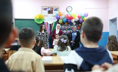 Bakan Göktaş, Şehit Muhammed İsmail Kaya İlkokulundaki tören sırasında Aras’a karnesini takdim etti; ardından sınıftaki diğer öğrencilere de karnelerini vererek onlarla hatıra fotoğrafı çektirdi.