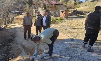 Sezayi Pütün: "Sazak Mahallemiz Gerel mevkiinde devam eden taş döşeme çalışmalarını yerinde inceledik. Beyağaç’ımız için durmadan, yorulmadan çalışmaya devam ediyoruz"