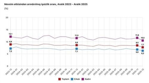 Cevdet Yılmaz: Aralık'ta işsizlik %7,7'ye geriledi; gençlerde %14,1, kadınlarda %10,5 oldu. İşgücü piyasasında güçlü görünüm sürüyor.