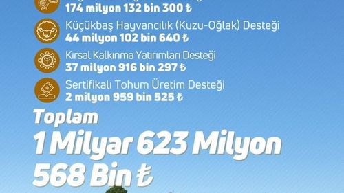 Çiftçilere 1 milyar 623 milyon lira tarımsal destek ödendi