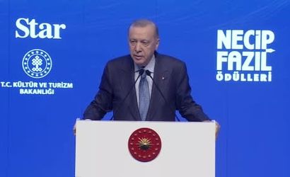 Necip Fazıl hakkında konuşmasında ise Erdoğan, “Müslümanın yüzünün yere eğilmesine, hele hele fikir planında acziyete düşmesine asla tahammülü yoktur” ifadelerini kullanarak Üstadın şiir ve düşünce dünyasındaki yerini ve gençlere verdiği yönü öne çıkardı.