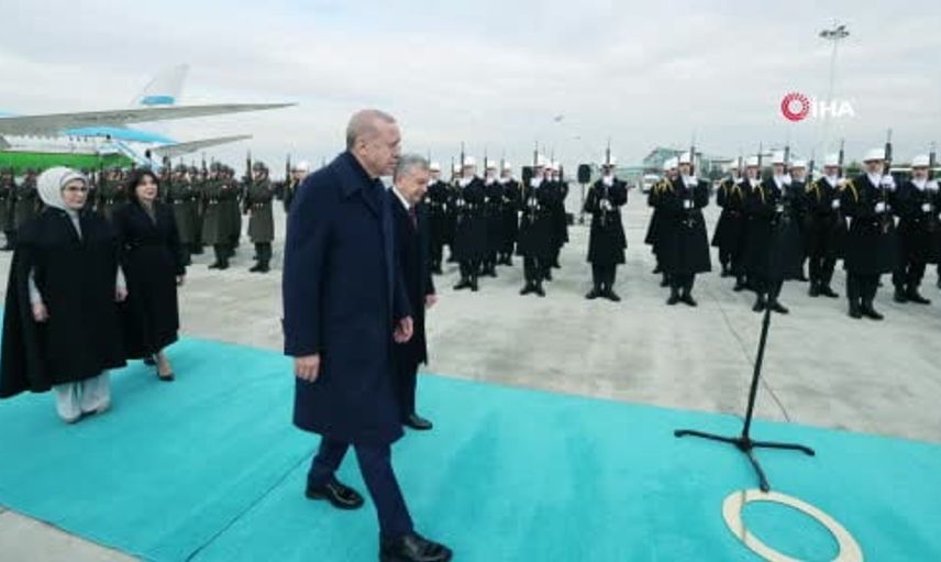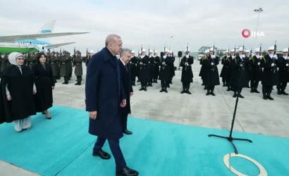 Cumhurbaşkanı Recep Tayyip Erdoğan, Özbekistan Cumhurbaşkanı Şevket Mirziyoyev'i havalimanında karşıladı.