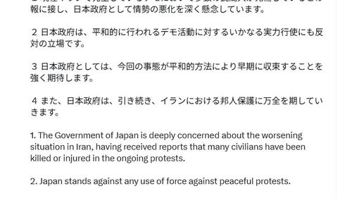 Başbakan Sanae Takaichi, İran’daki protestoların kötüleşmesinden "derin endişe" duyulduğunu belirtti; barışçıl çözüm ve Japon vatandaşlarının güvenliği vurgulandı.