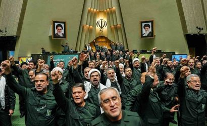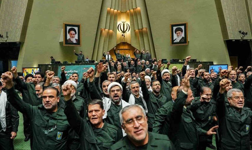 İran Meclisi genel kurulunda milletvekilleri, Avrupa Birliği'nin (AB) İran Devrim Muhafızları Ordusu'nun (DMO) terör örgütleri listesine alınmasına tepki olarak DMO üniformaları giyerek oturuma katıldı. Genel kurulda kürsüye, "Devrim Muhafızları Ordusu dünyanın en büyük terörle mücadele örgütüdür" yazılı pankart asıldı ve Kalibaf ile milletvekilleri "Kahrolsun ABD" sloganları attı.