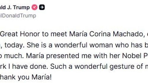 Maria Corina Machado, Nobel Barış Ödülü madalyasını Beyaz Saray’da Donald Trump’a takdim etti; Trump jesti 'karşılıklı saygı' olarak nitelendirdi.