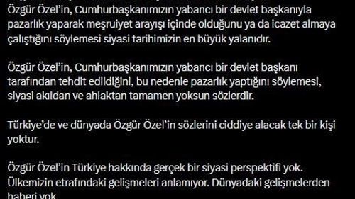 AK Parti Sözcüsü Ömer Çelik, CHP Genel Başkanı Özgür Özel'i 'iftira üretim merkezi' olmakla suçlayıp açıklamalarını 'yalan siyaseti' olarak nitelendirdi.