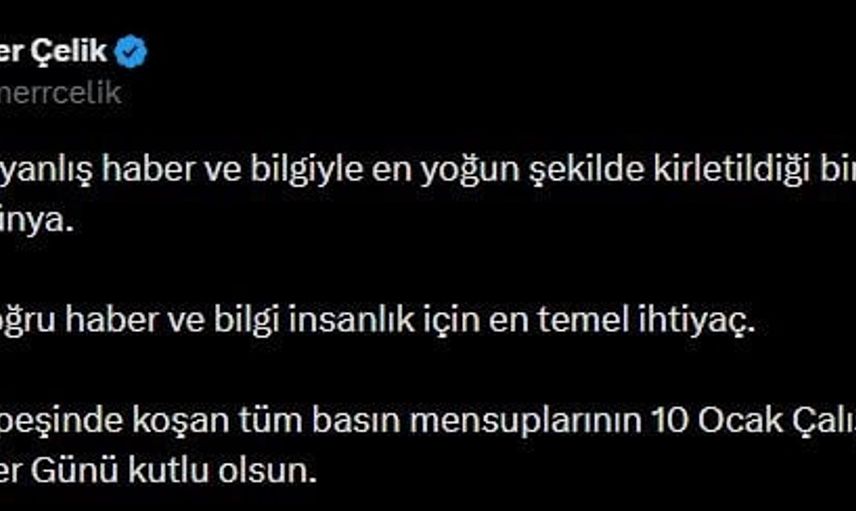 AK Parti Sözcüsü Ömer Çelik, 10 Ocak Çalışan Gazeteciler Günü nü sosyal medya hesabından yaptığı paylaşım ile kutladı.