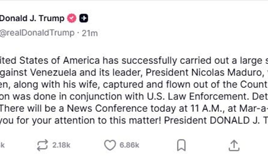 Paylaşımın devamında ise, "ABD, Venezuela ve lideri Devlet Başkanı Nicolas Maduro’ya karşı geniş çaplı bir saldırı düzenleyerek Maduro ile eşini yakalamayı ve ülkeden çıkarmayı başardı. Bu operasyon ABD kolluk kuvvetleriyle iş birliği içinde gerçekleştirildi. Ayrıntılar daha sonra paylaşılacak" denildi.