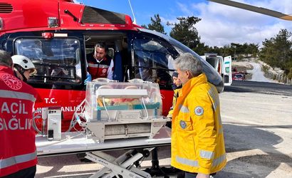 Mersin'in Gülnar ilçesinde, 34 haftalık olarak dünyaya gelen ikiz bebekler, ambulans helikopter ile tedavi için kent merkezindeki hastaneye sevk edildi.