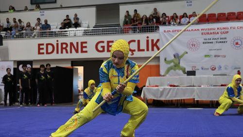 Edirne'de düzenlenen 8. Açık Balkan Wushu Kung Fu Şampiyonası, 15 Temmuz şehitleri ve Filistin için açılış seremonisi ile start aldı.