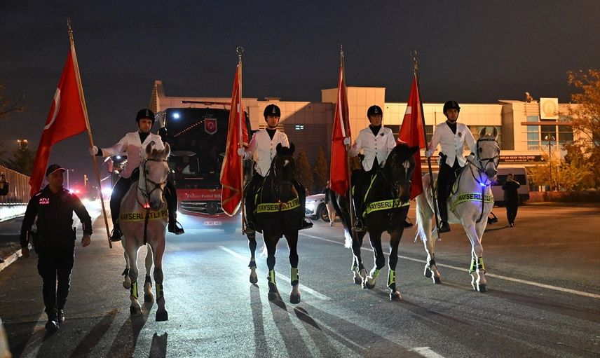 Ay-yıldızlı kafile, özel uçakla geldiği Kayseri Havalimanı'ndan otobüslerle RHG EnerTürk Enerji Stadı'na geçti. Geniş güvenlik önlemleri altında stada ulaşan kafile, Kayserili vatandaşların bayraklarla yaptığı coşkulu selamlamasıyla karşılandı.