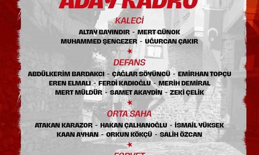 2026 FIFA DÜNYA KUPASI ELEMELERİ'NDE 15 KASIM'DA BURSA'DA BULGARİSTAN VE 18 KASIM'DA DEPLASMANDA İSPANYA İLE KARŞILAŞACAK A MİLLİ FUTBOL TAKIMI'NIN 28 KİŞİLİK ADAY KADROSU BELLİ OLDU.